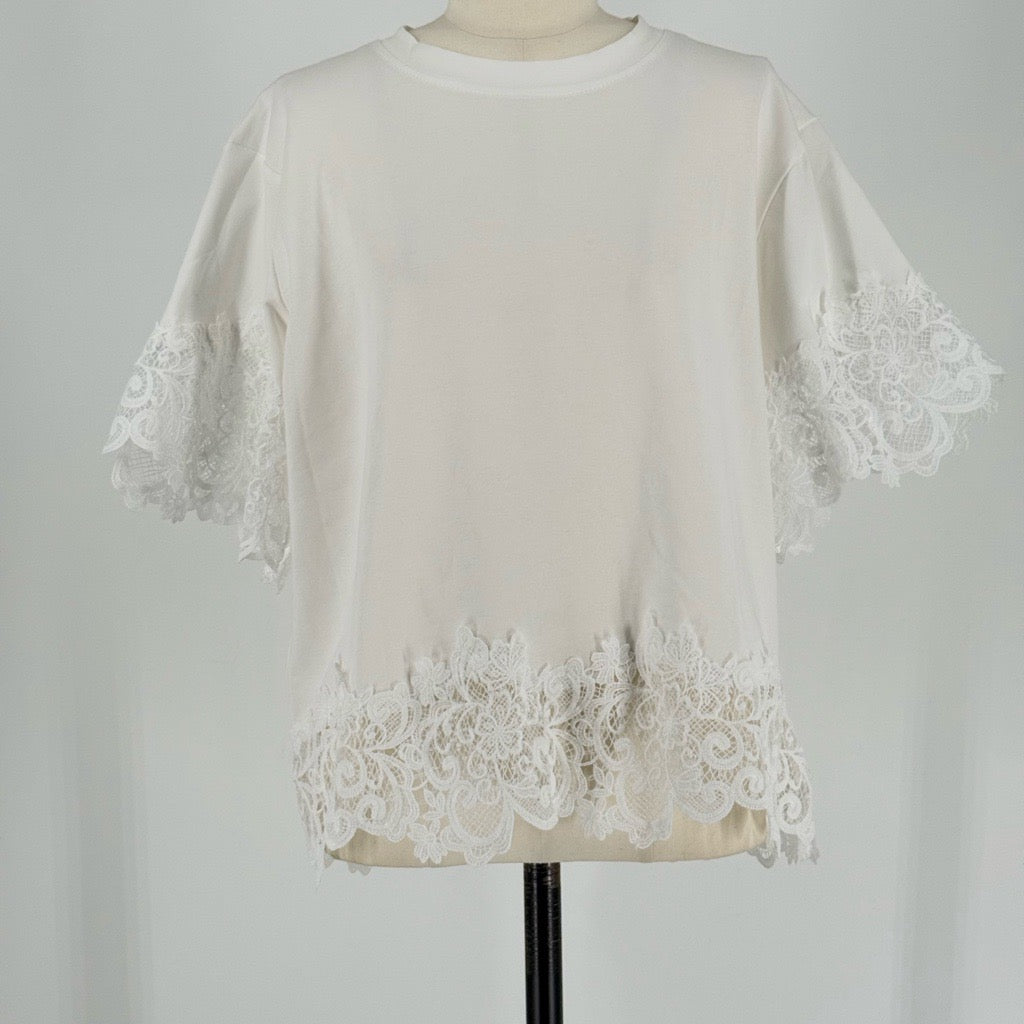 袖レース半袖Tシャツ